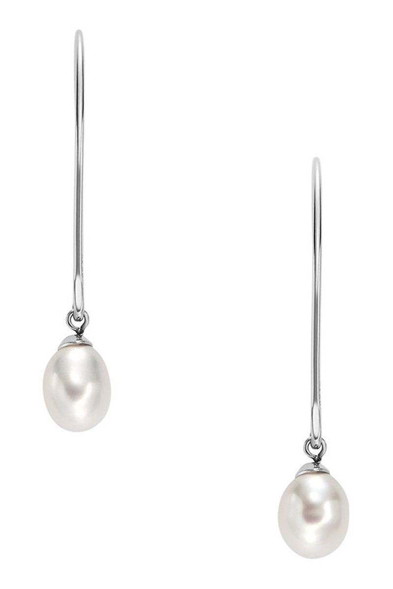 Hangende oorbellen ingelegd met 1 cultivéparel.