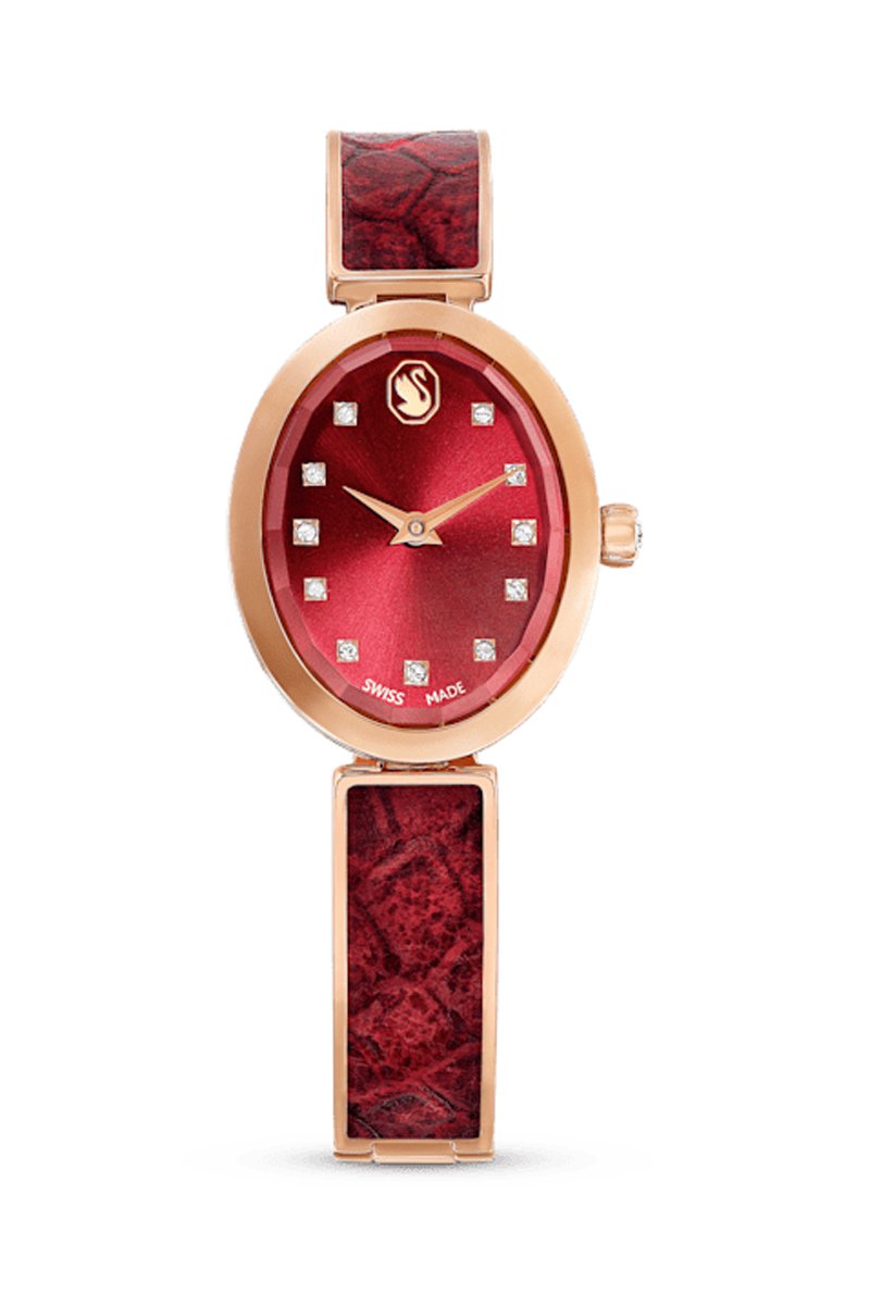 Metalen Quartz Horloge, leer, Roséverguld en met Swarovski Kristallen Crystal Rock Oval