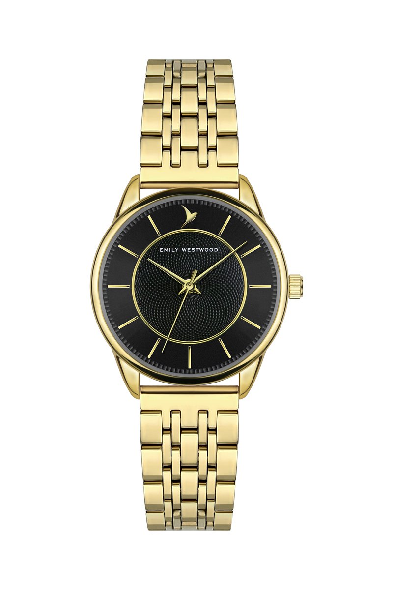 Stalen Quartz Horloge - Goudkleurig en zwart - Emily Westwood