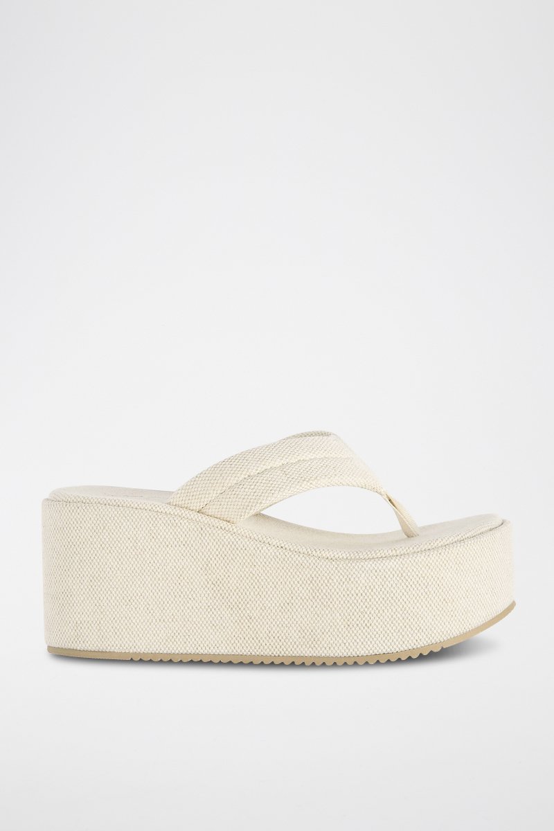 Slippers met sleehak- Ecru