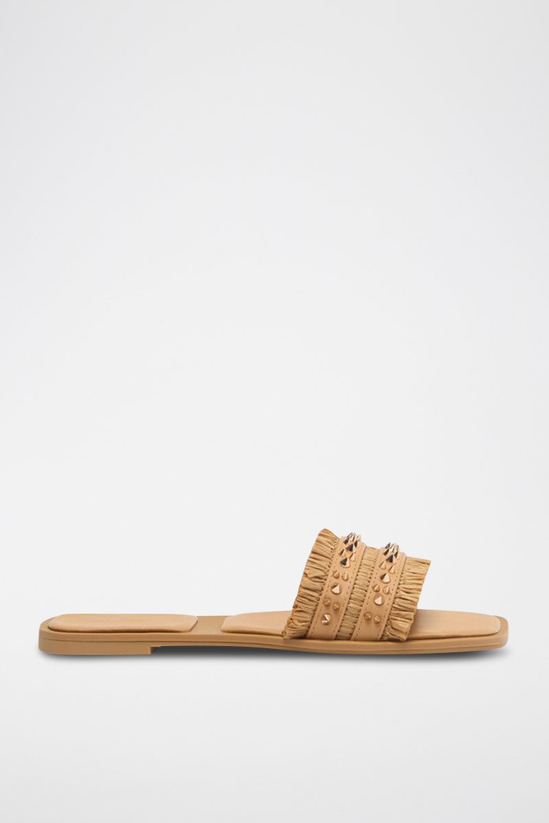 Bandje met detail van metaal en franjes aan de voorkant.