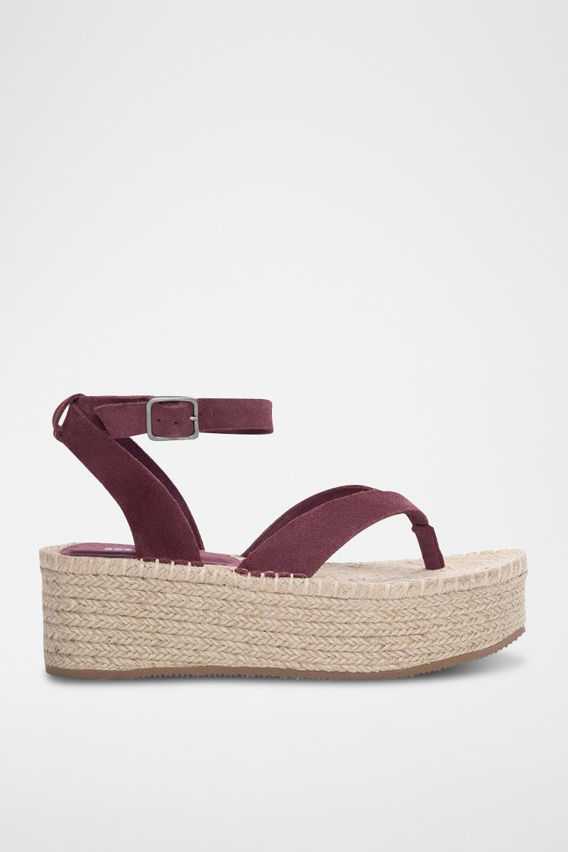 Leren Platform Sandalen - Bordeauxrood