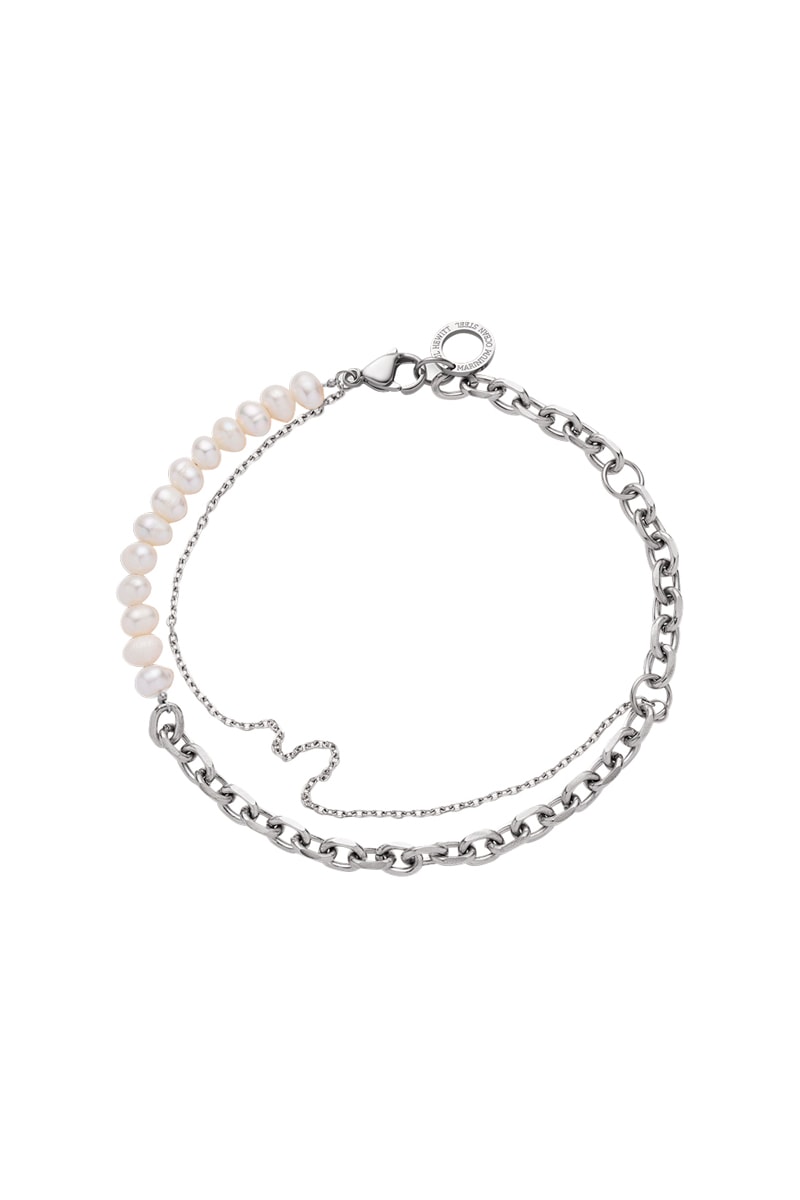 Materiaal: gerecycled roestvrij staal (Marinium®) en kunstparels