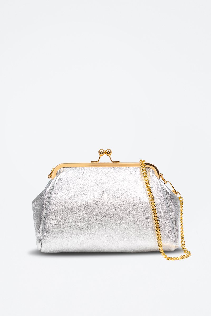 Schoudertas van metallic leer.