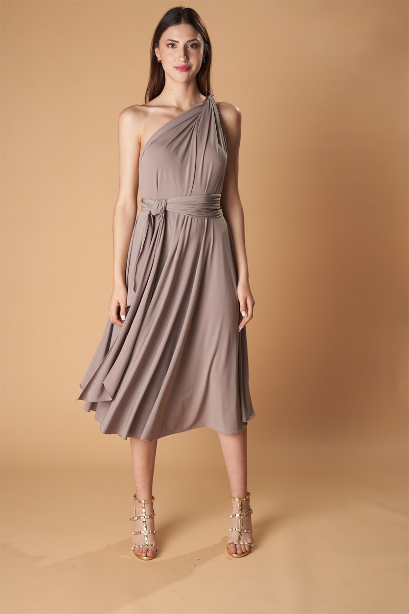 Mouwloze Dubbelzijdige Asymmetrische Jurk - Taupe
