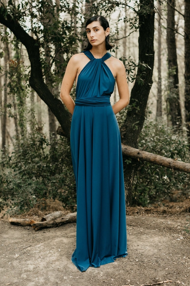 Lange mouwloze jurk - Pauwblauw