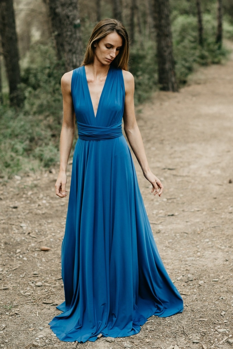 Lange mouwloze jurk - Blauw
