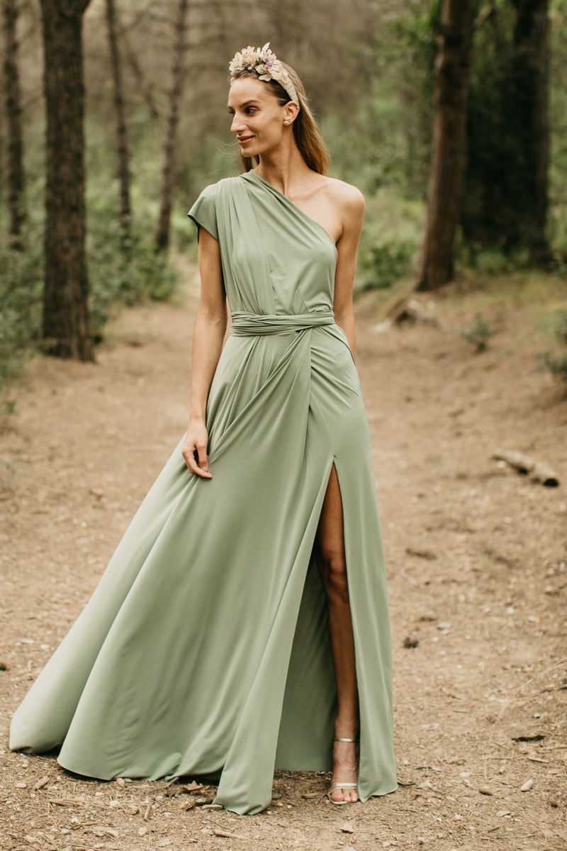 Asymmetrische jurk met een mouw.