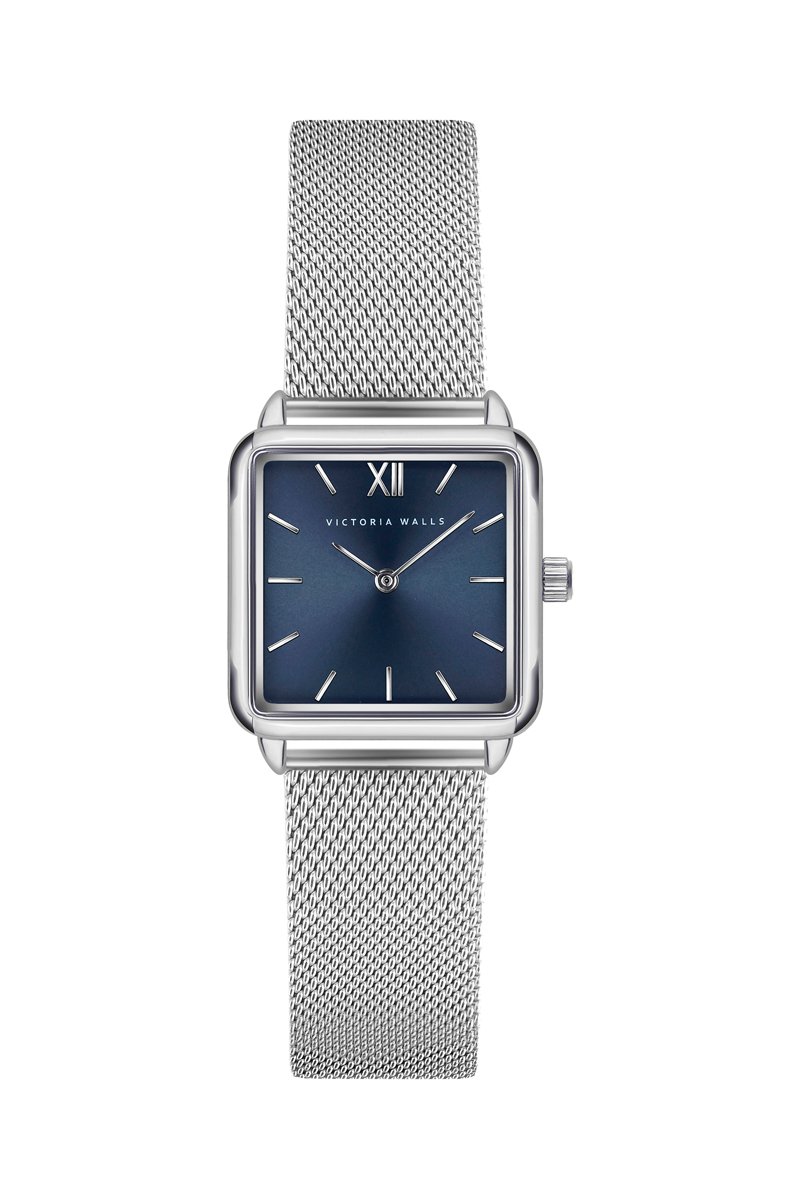 Stalen Quartz Horloge - Zilverkleurig en Marineblauw - Victoria Walls