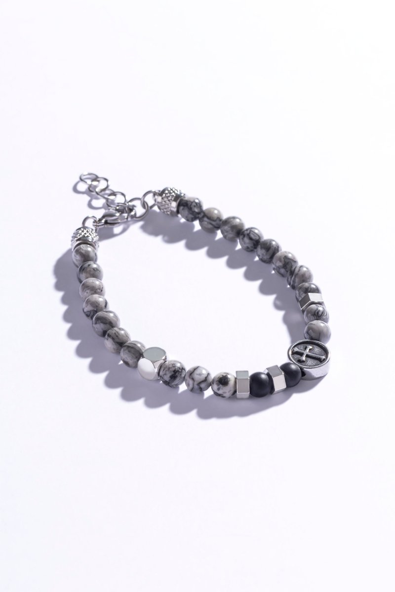 Materiaal: Jaspis, glasparels en roestvrij staal