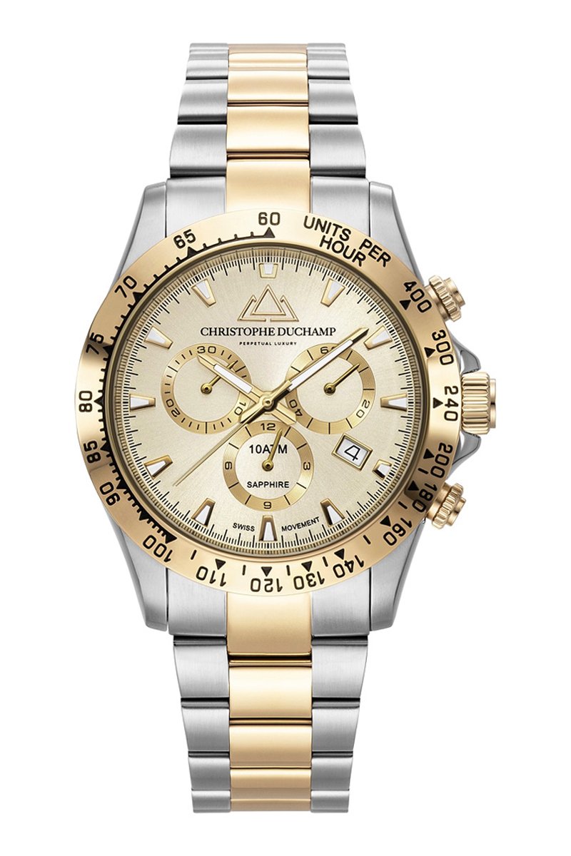 Stalen Quartz Horloge – Tachymeter en Chronograaf - Zilverkleurig en Goudkleurig