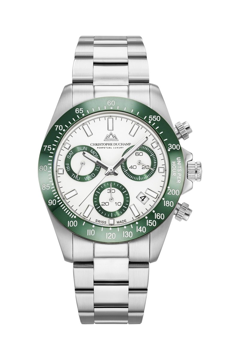 Stalen Quartz Horloge Grand mont- Chronograaf - Zilverkleurig en Groen