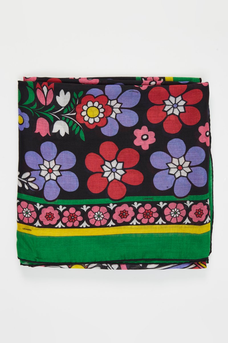 Wollen en Zijden Sjaal Disegno Ricamo - Zwart en Rood