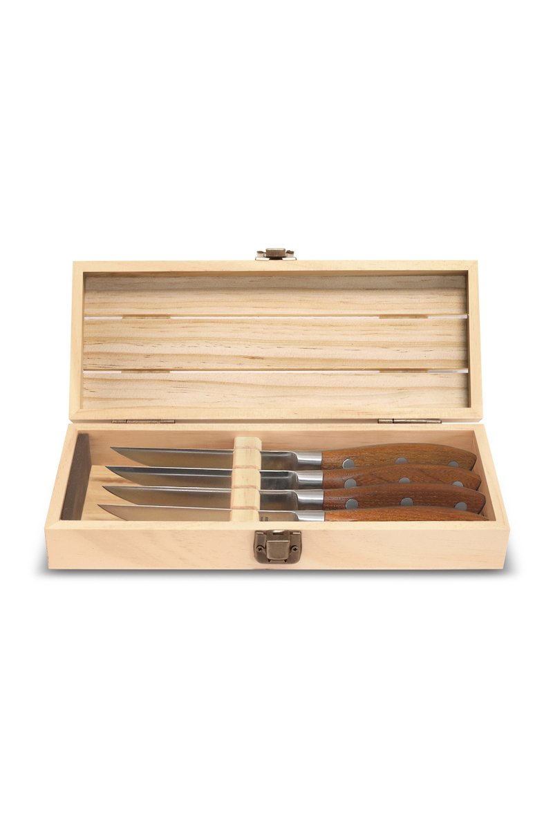 Houten Set met 4 Roestvrijstalen Vleesmessen en Houten Heft - 5-delig