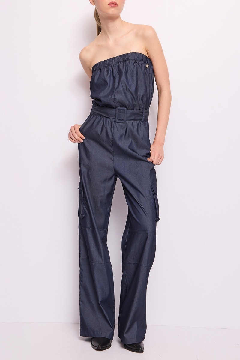 Strapless jumpsuit- Indigoblauw