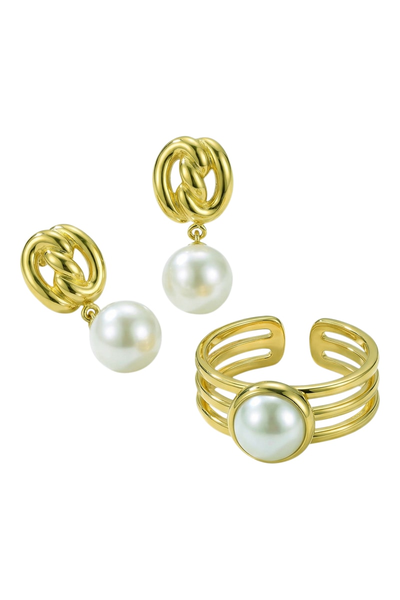 - Verstelbare ring van doublé geelgoud en kunstparel