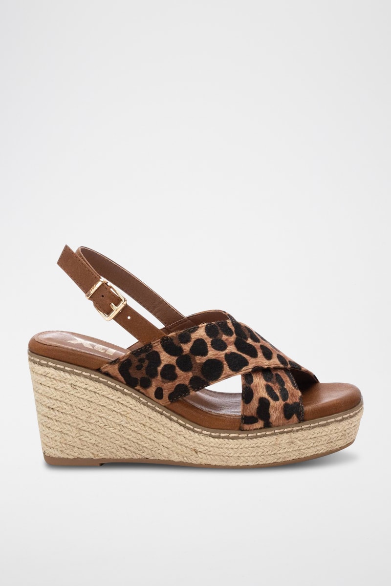 Gekruiste bandjes met luipaardprint aan de voorkant.