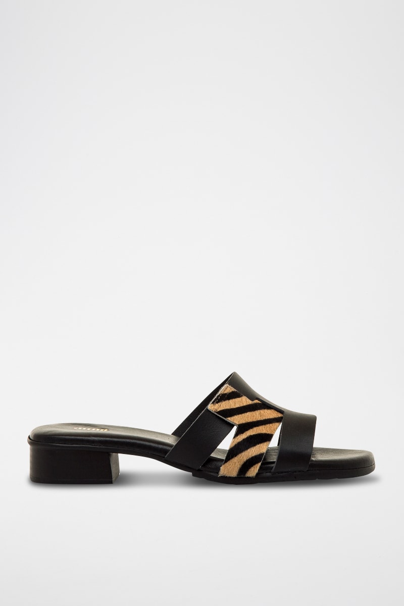 Leren Muiltjes met Hak Ines - Zwart