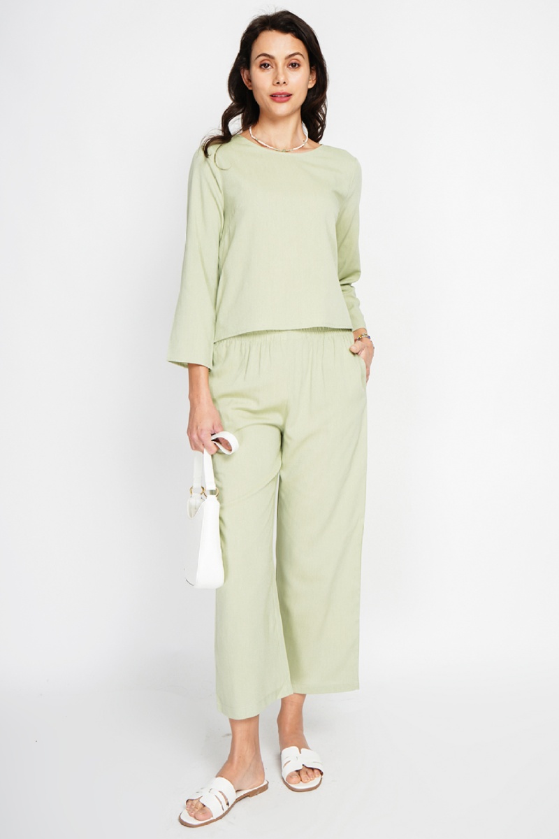 Linnen Top en Broek - Groen