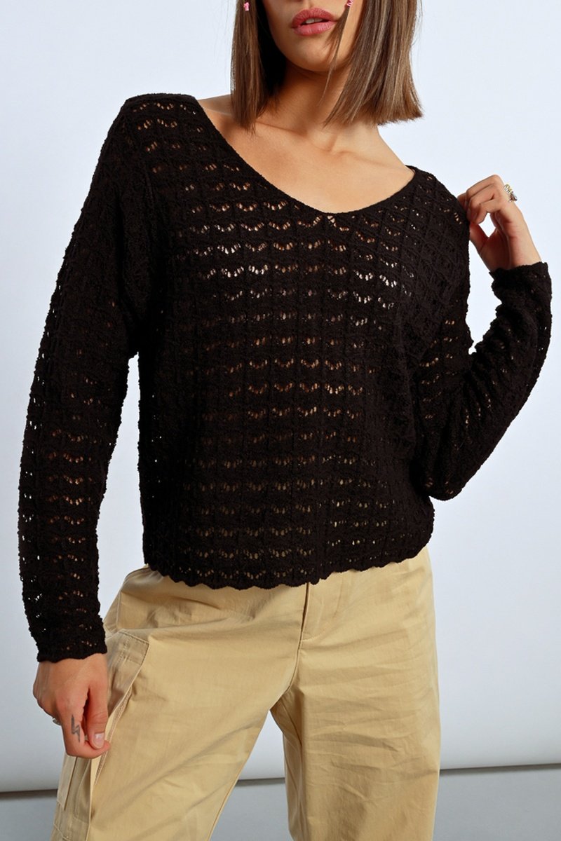 Opengewerkt geweven trui.