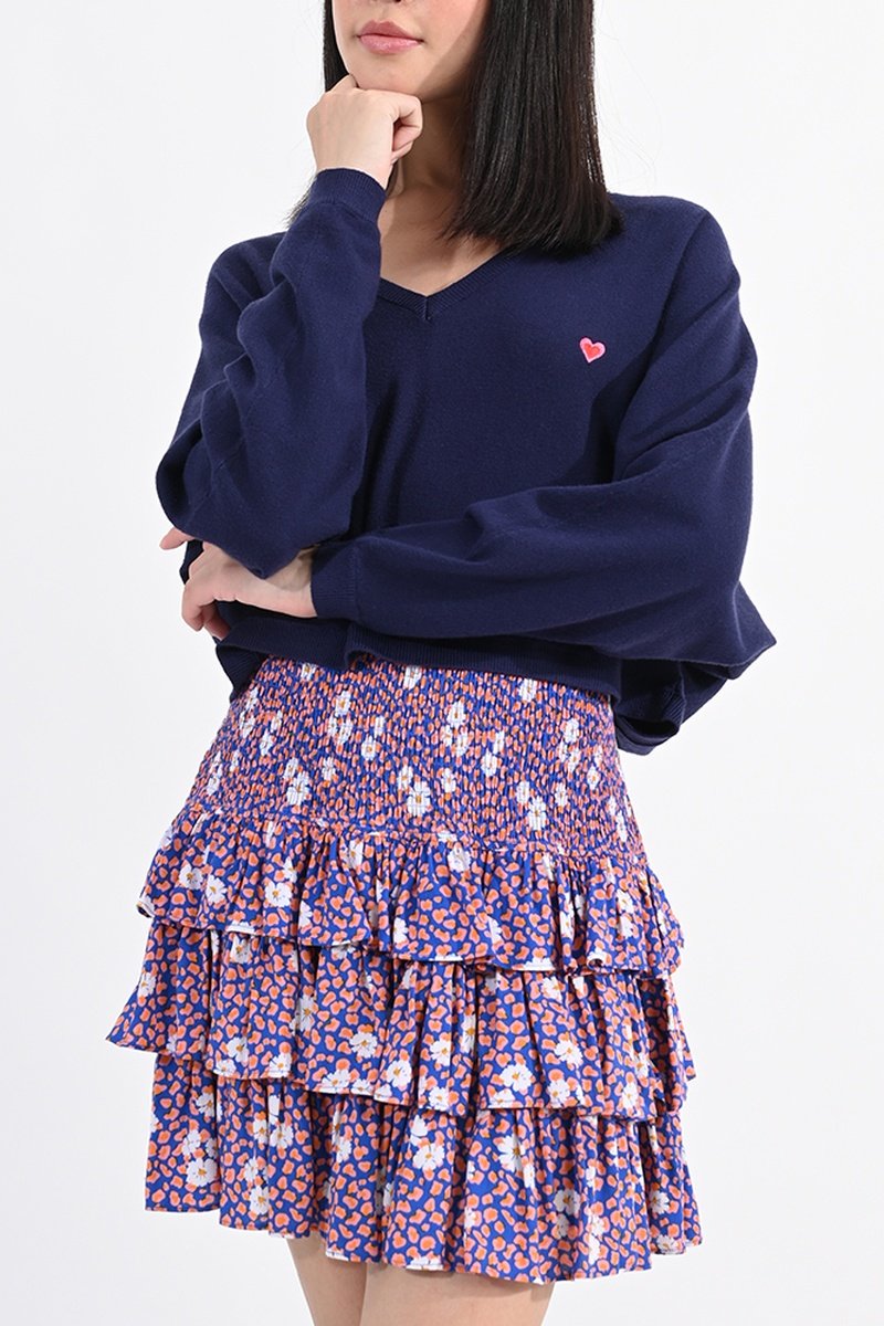 Minirok met Ruches Hoge Taille - Marineblauw - Lili Sidonio