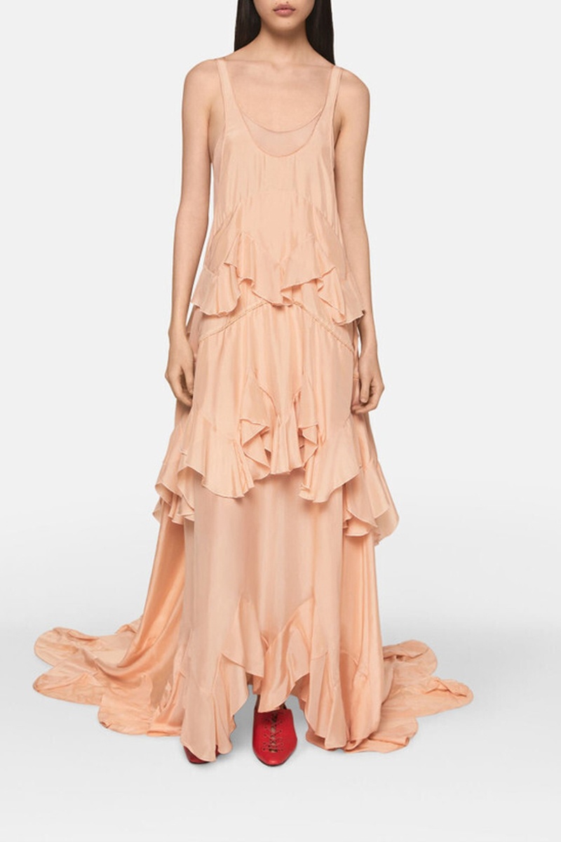 Lange Mouwloze Zijden Jurk - Lichtoranje