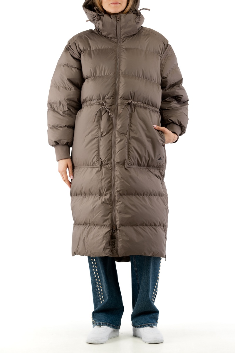 Gewatteerde Jas met capuchon en trekkoorden met lange mouwen.