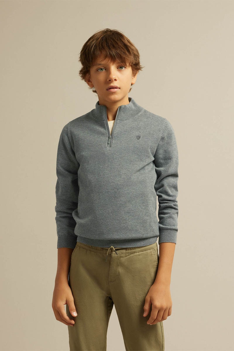 Opstaande kraag met rits.