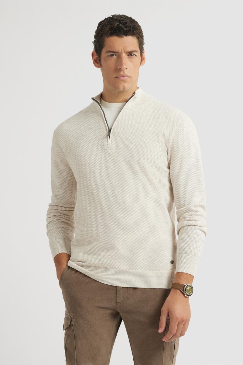 Opstaande kraag met rits.