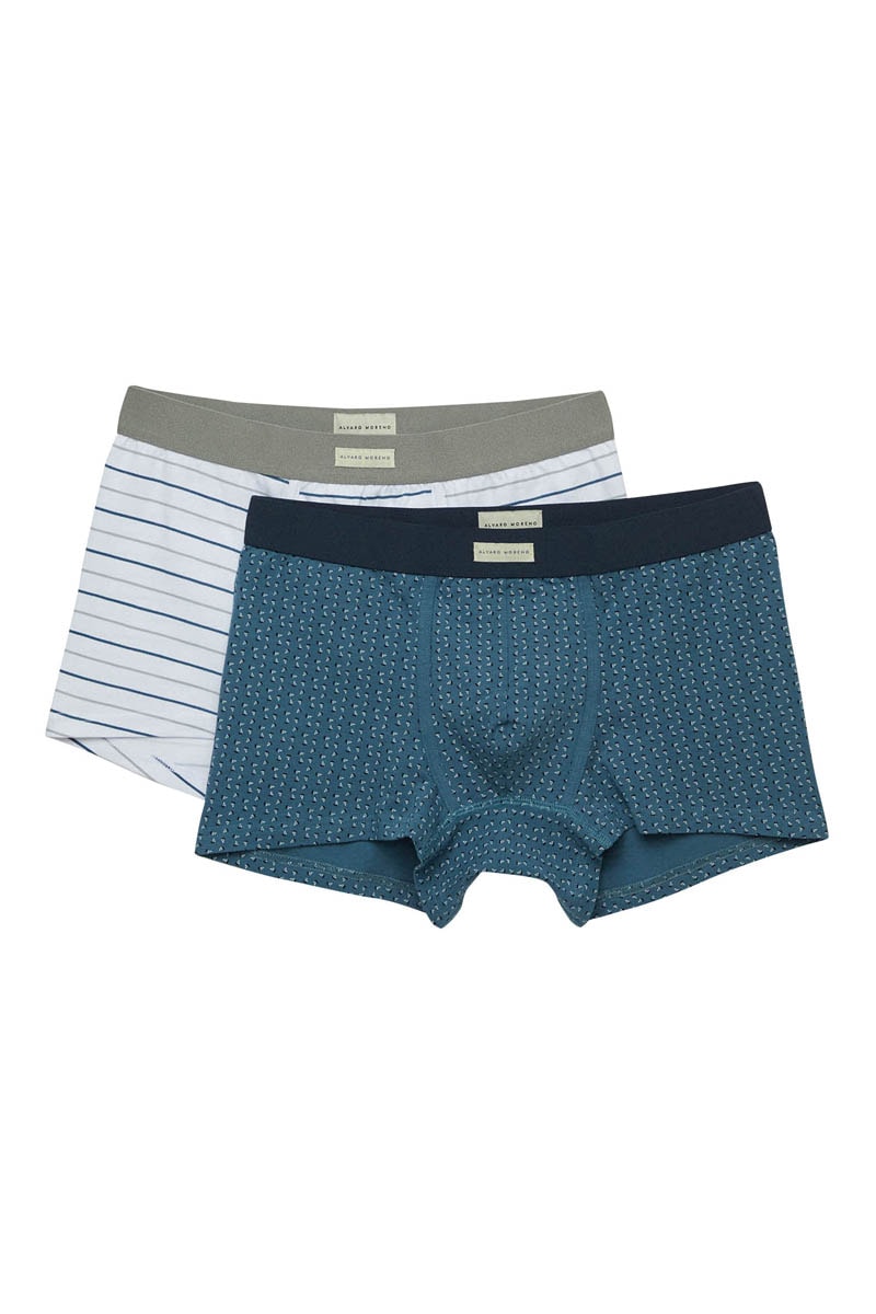 Kleur: pauwblauw, marineblauw, wit en lichtgrijs