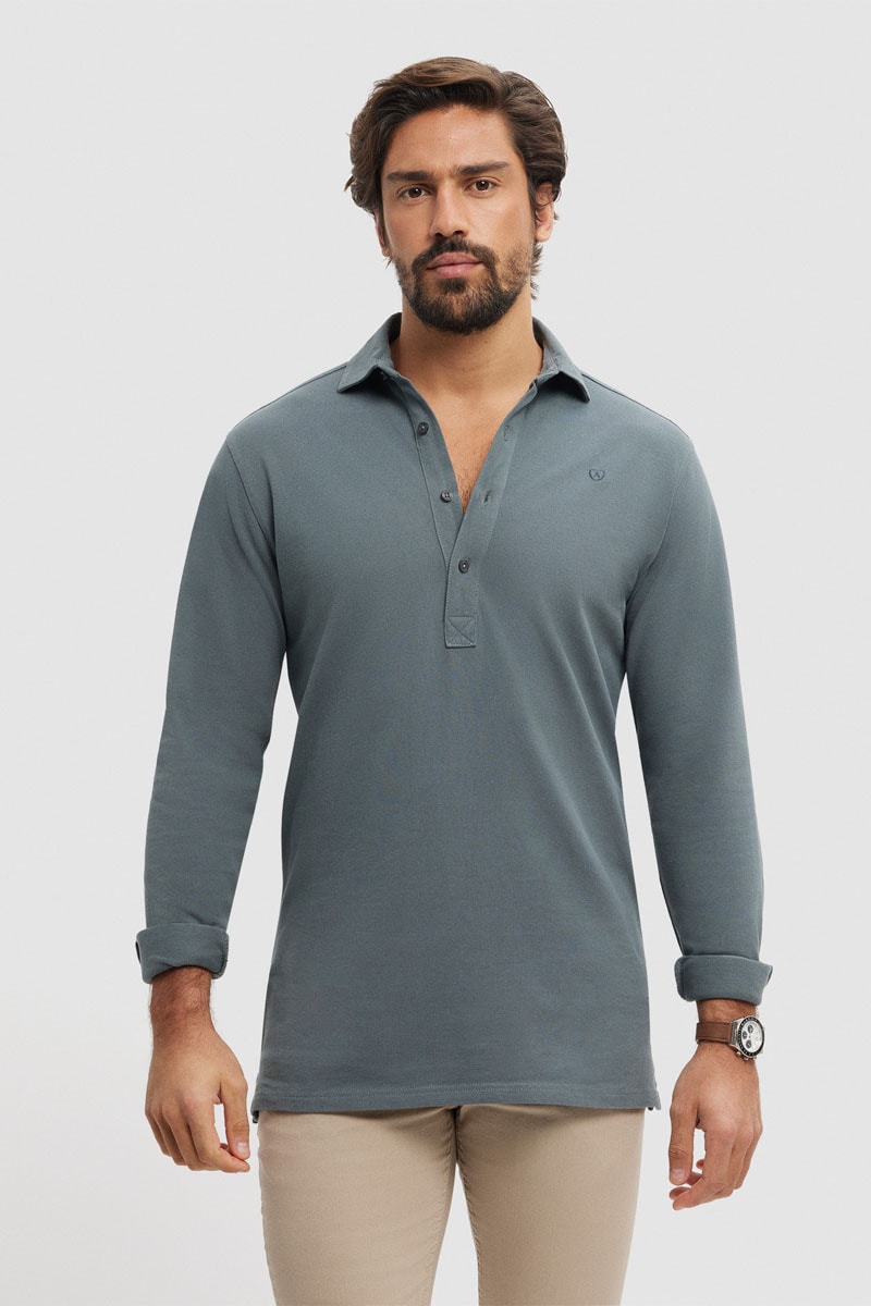 Polo met lange mouwen met knopen.