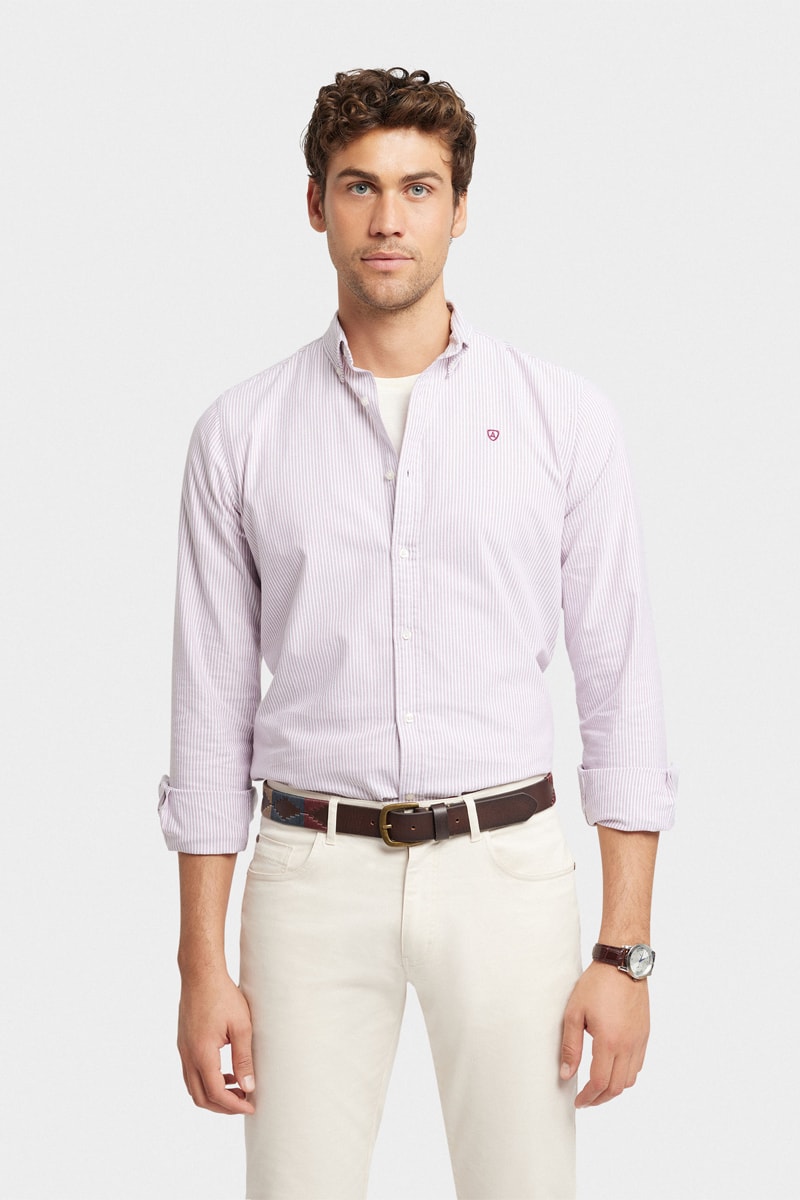 Biologisch Katoenen Overhemd Regular Fit - Bordeauxrood en Lichtpaars