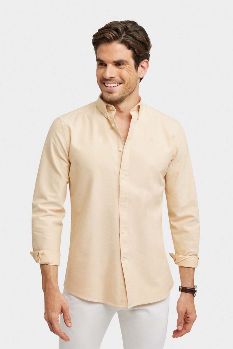 Biologisch Katoenen Overhemd Regular Fit - Camel