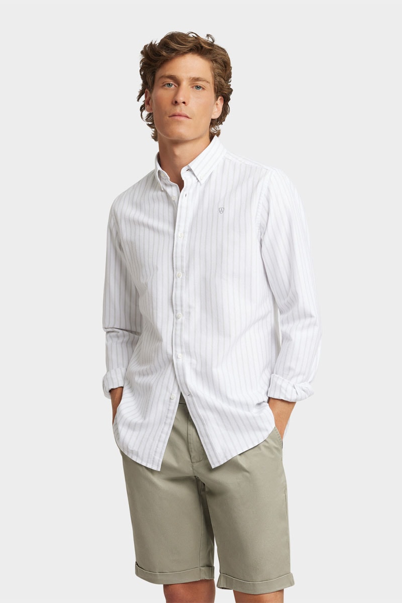 Biologisch Katoenen Overhemd Regular Fit - Wit en Grijs
