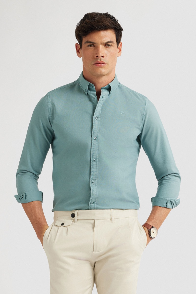 Biologisch Katoenen Overhemd Regular Fit - Lichtgroen