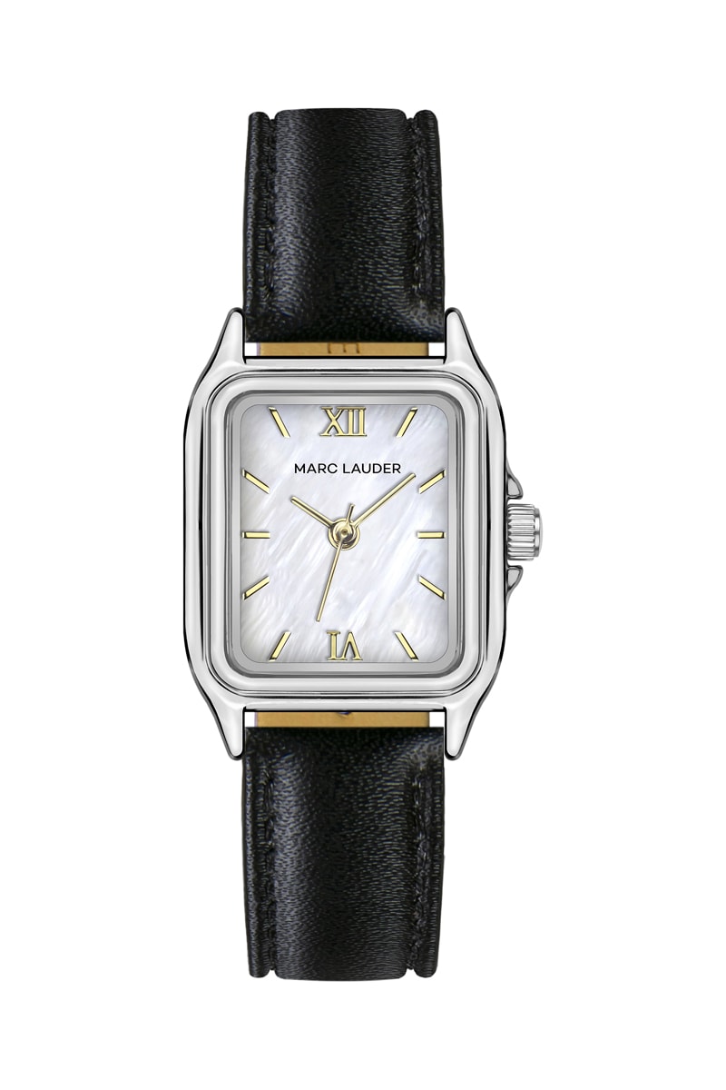 Leren Quartz Horloge Nira - Zwart en Zilverkleurig