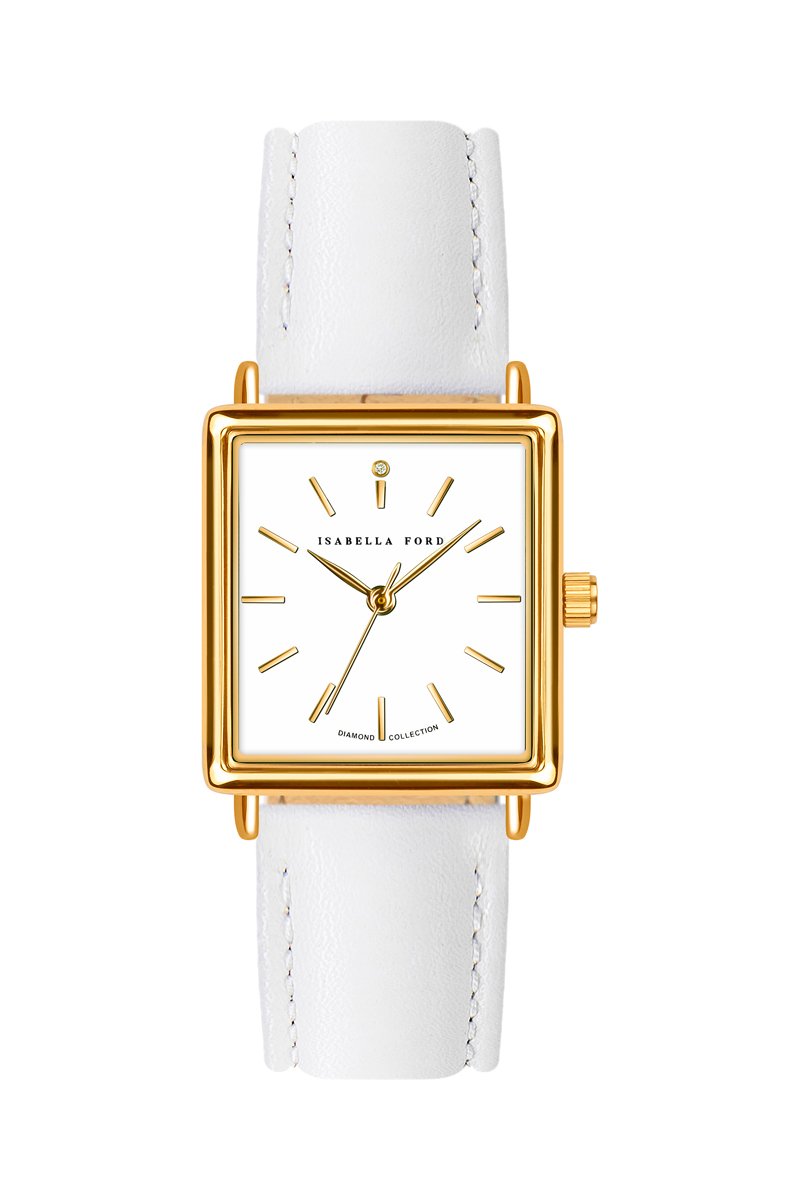 Leren Quartz Horloge met Diamant Charlotte