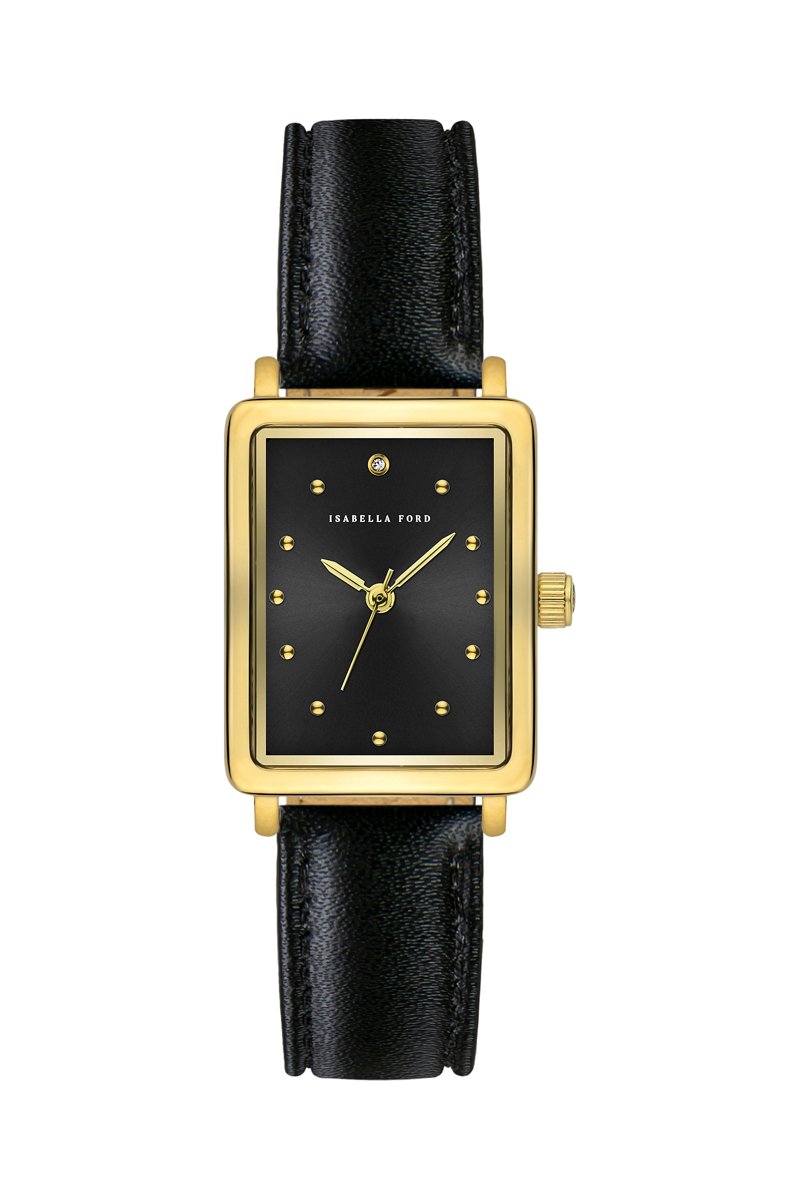 Leren Quartz Horloge met Diamant Cléophée