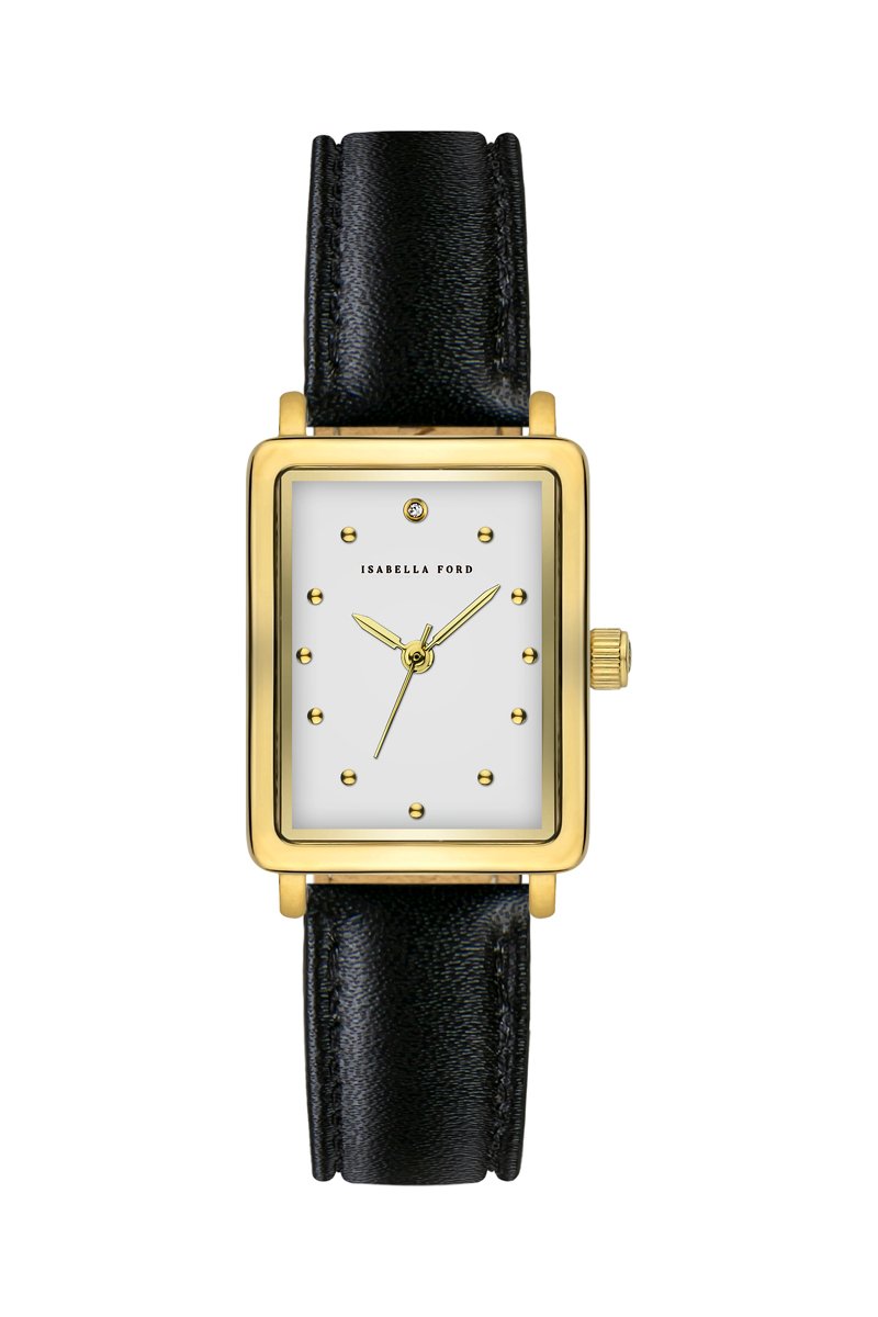 Leren Quartz Horloge met Diamant Eulalie