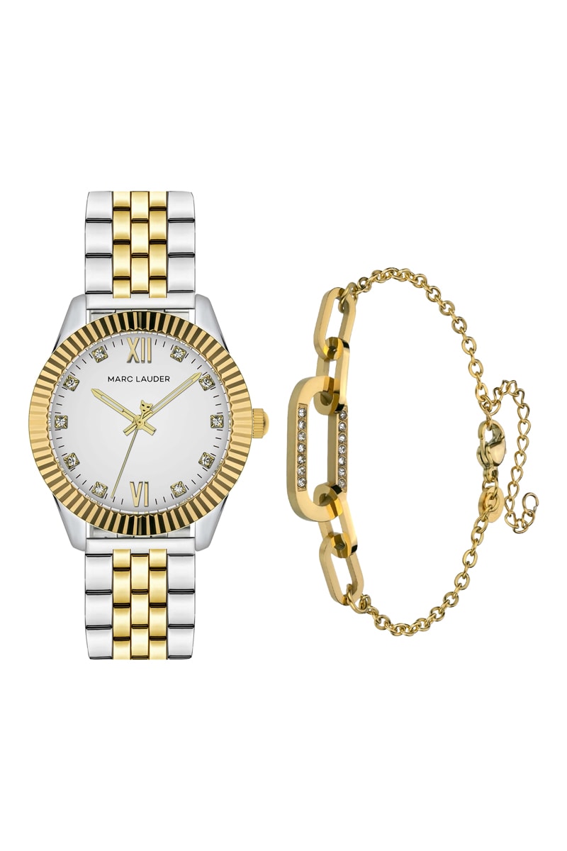 Set Stalen Quartz Horloge en Armband van Zirkonia's Athens