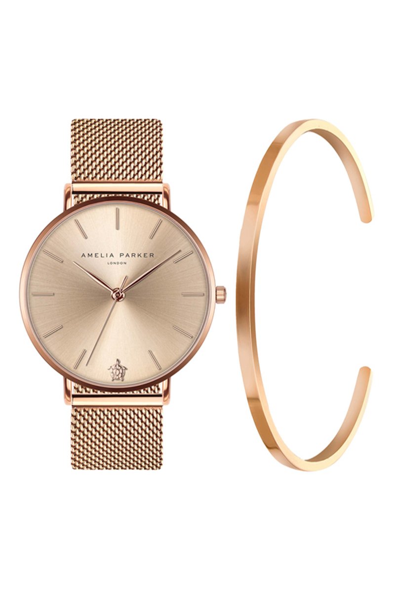 Set Quartz Horloge en stalen armband Gold Sky- Roze