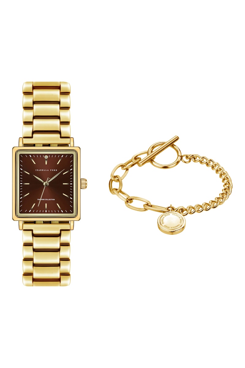 Set Quartz Horloge en Stalen Armband ingelegd met Diamanten