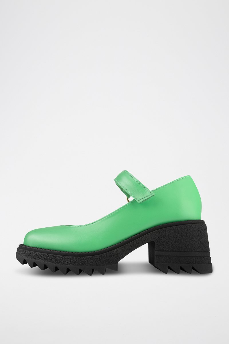 Leren Mary Janes met Hak See You Tonight - Lichtgroen