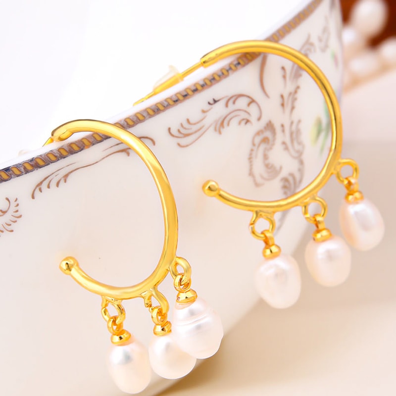 Creolen - Messing Doublé Goud & Parels