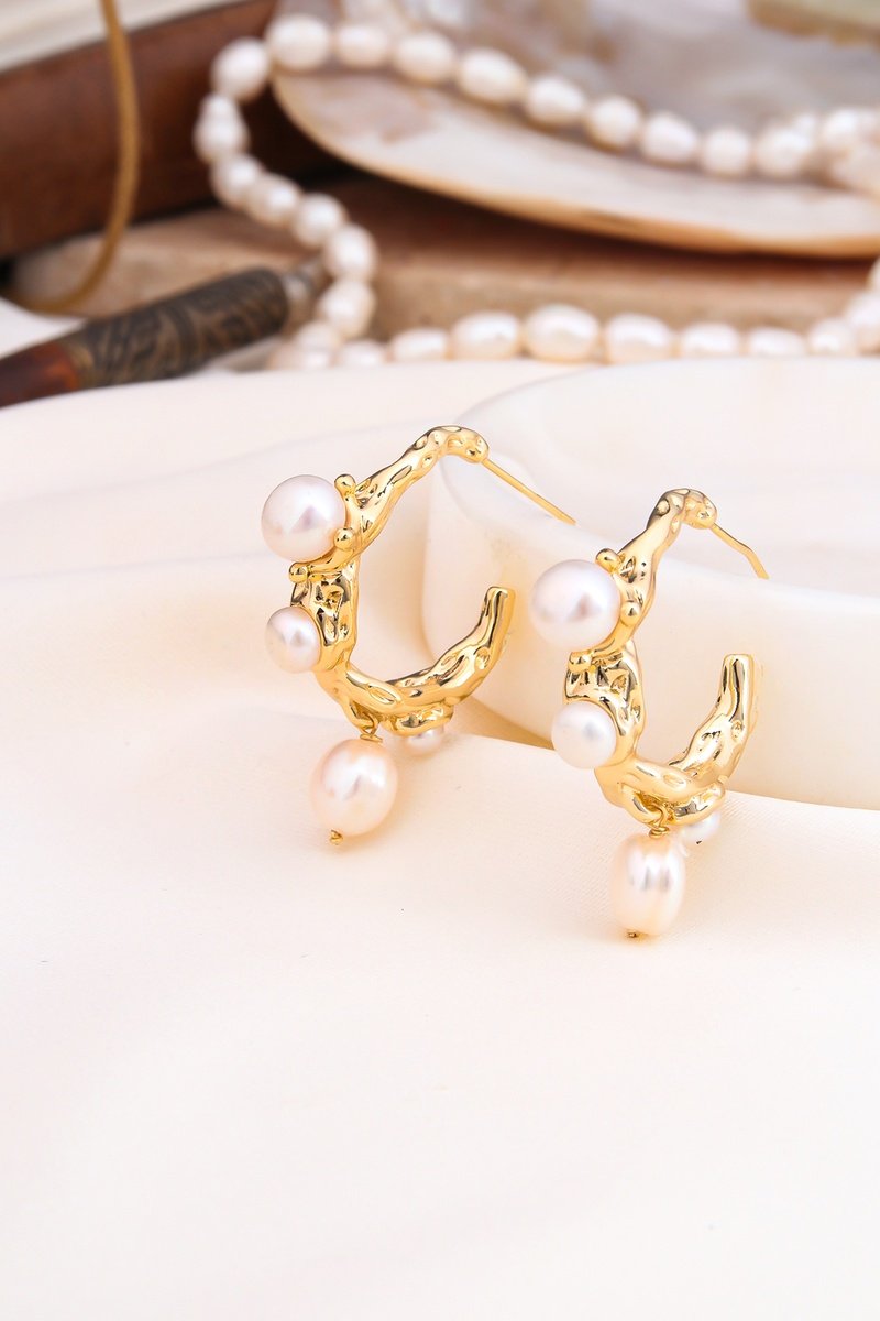 Creolen ingelegd met 3 cultivéparels.