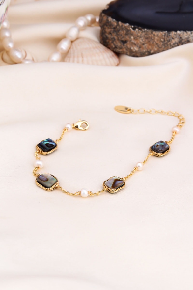 Armband - Doublé Geelgoud, Cultivéparels en Labradorieten