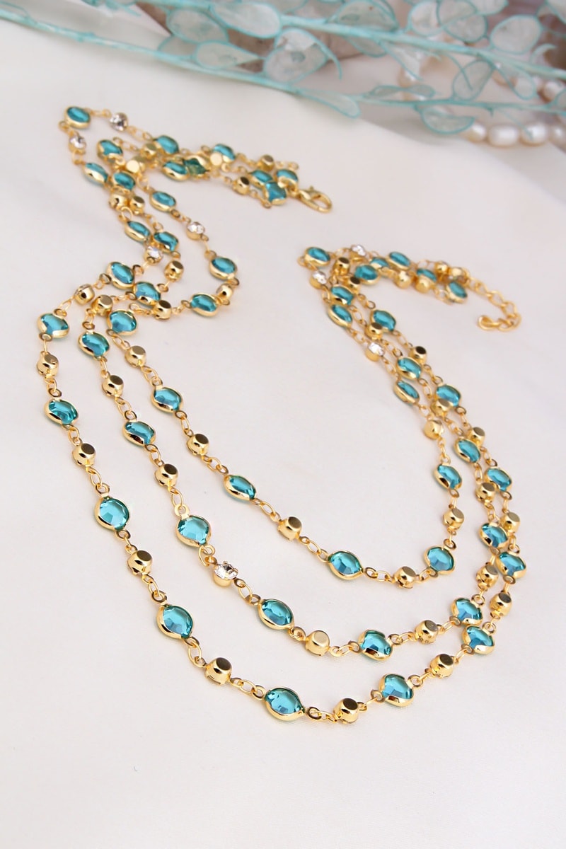 Ketting - Goudkleurig en Hemelsblauw
