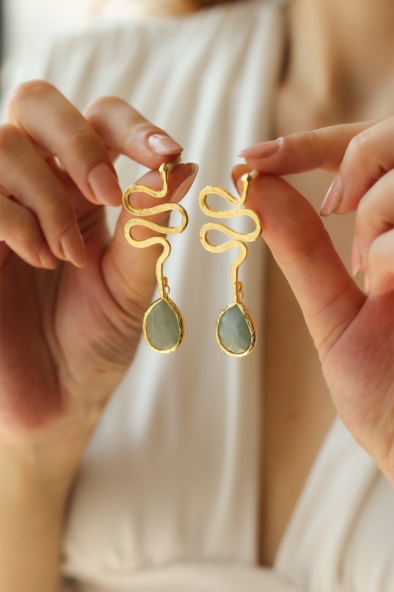 Hangende oorbellen ingelegd met 1 aquamarijn.
