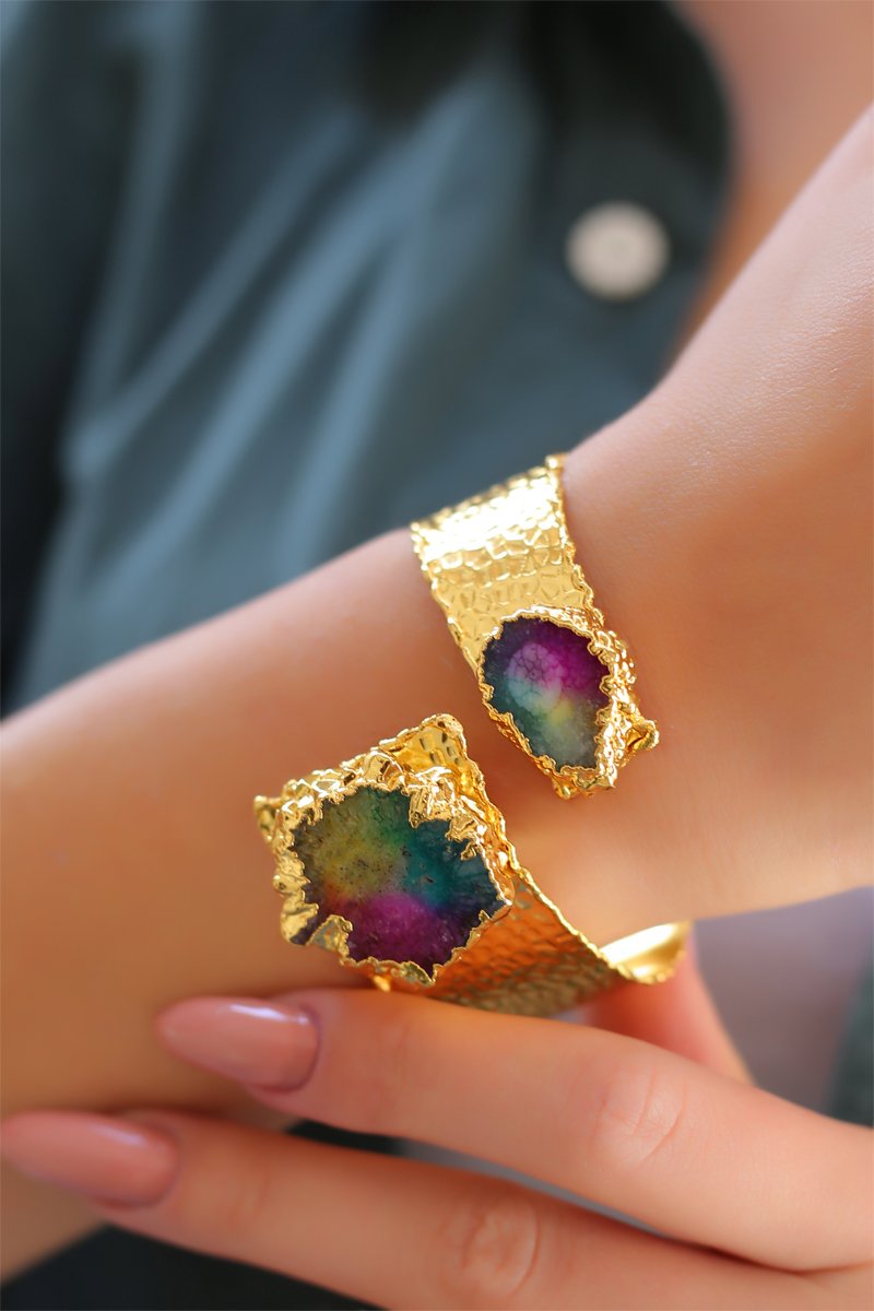 Open Armband - Goudverguld Brons en Kwarts