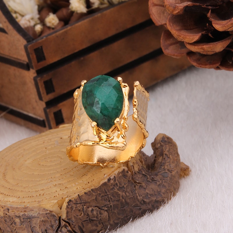 Verstelbare Ring - messing doublé goud en agaat